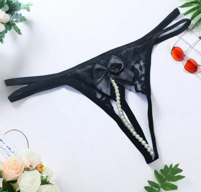 Gvendolin – fekete gyöngyös nyitott tanga