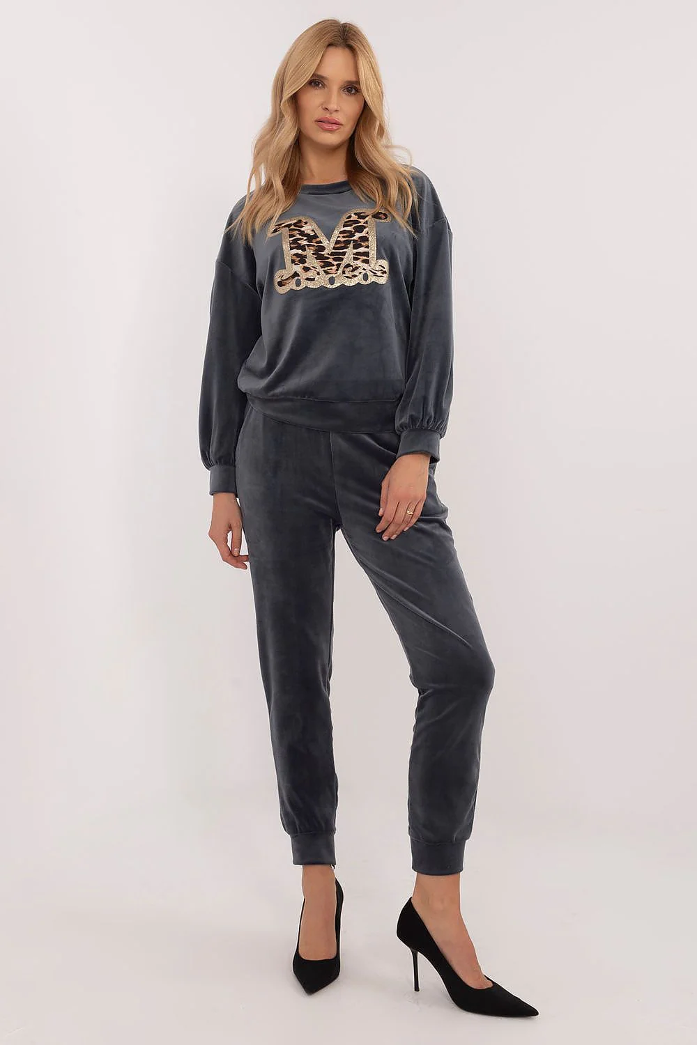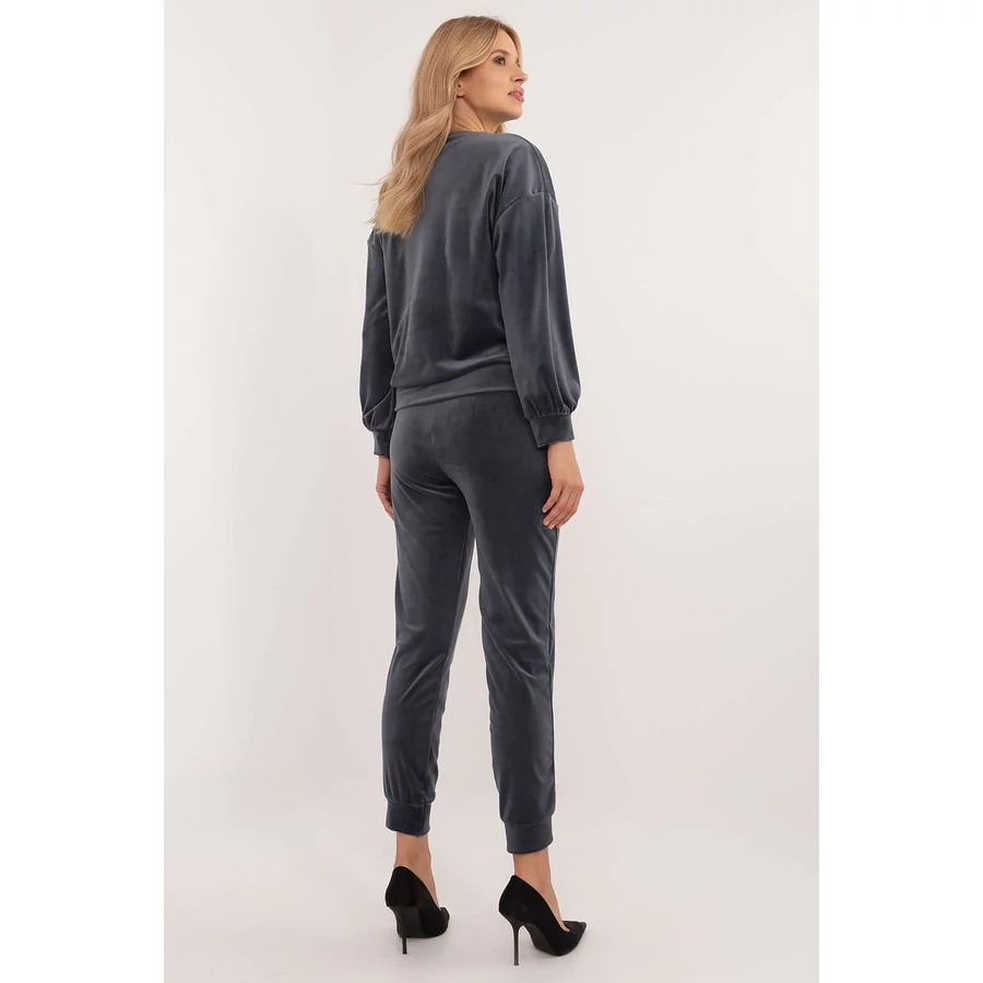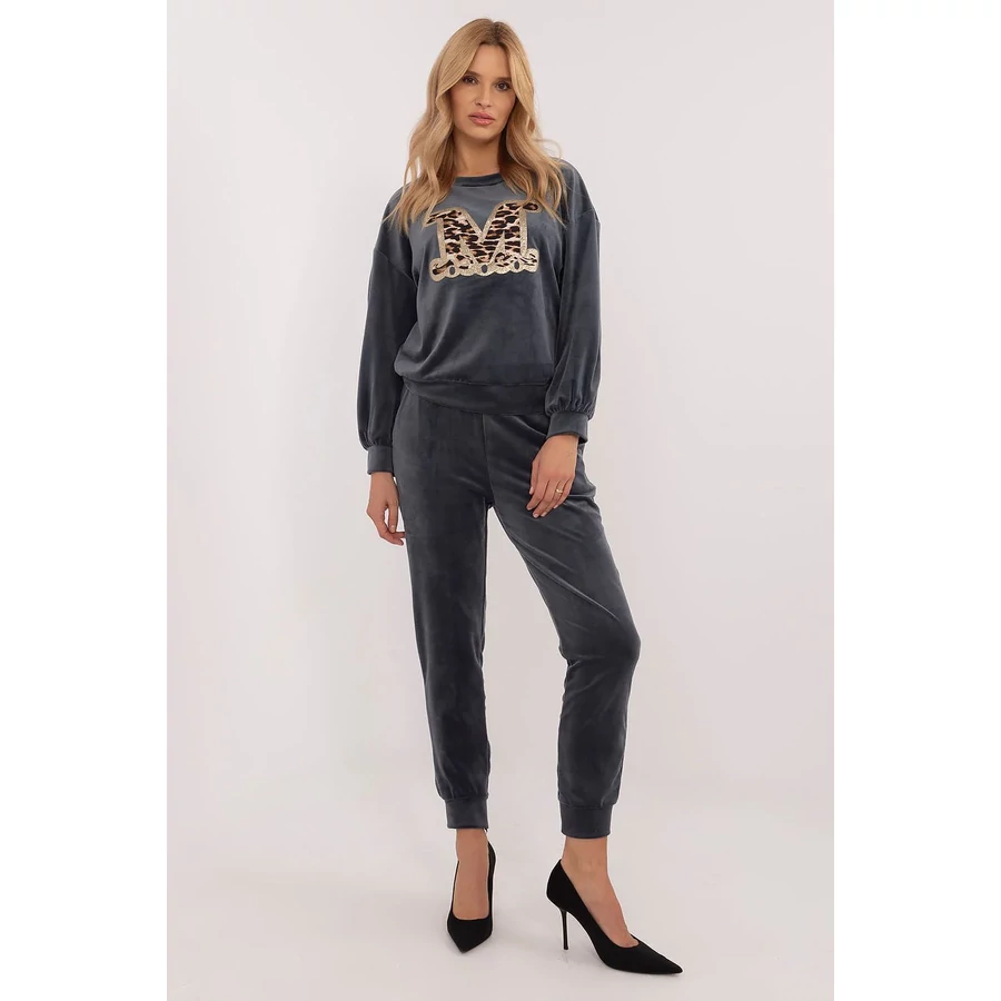 Női velúr szett, amely blúzból és nadrágból áll, ideális a mindennapi alkalmakra, beleértve a munkát is, alkalmi stílusban. Puha viszkóz/elasztán keverékből készült, kényelmet és mozgásszabadságot biztosít. Az elöl nyomtatott pulóver modern, divatos jelleget kölcsönöz, míg a kerek nyakkivágás és a hosszú ujjak a klasszikus, kényelmes szabást hangsúlyozzák. A nadrág magasított szabású a hízelgő sziluettért, a hosszú, bordázott lábak pedig a sportos megjelenésért. A becsúsztatható oldalzsebek praktikus kiegészítést jelentenek, ideálisak a mindennapi szükséges dolgok számára. Ez a velúr szett a stílus és a kényelem tökéletes kombinációja alkalmi és hétköznapi alkalmakra egyaránt.