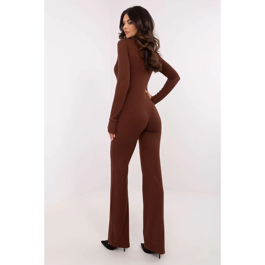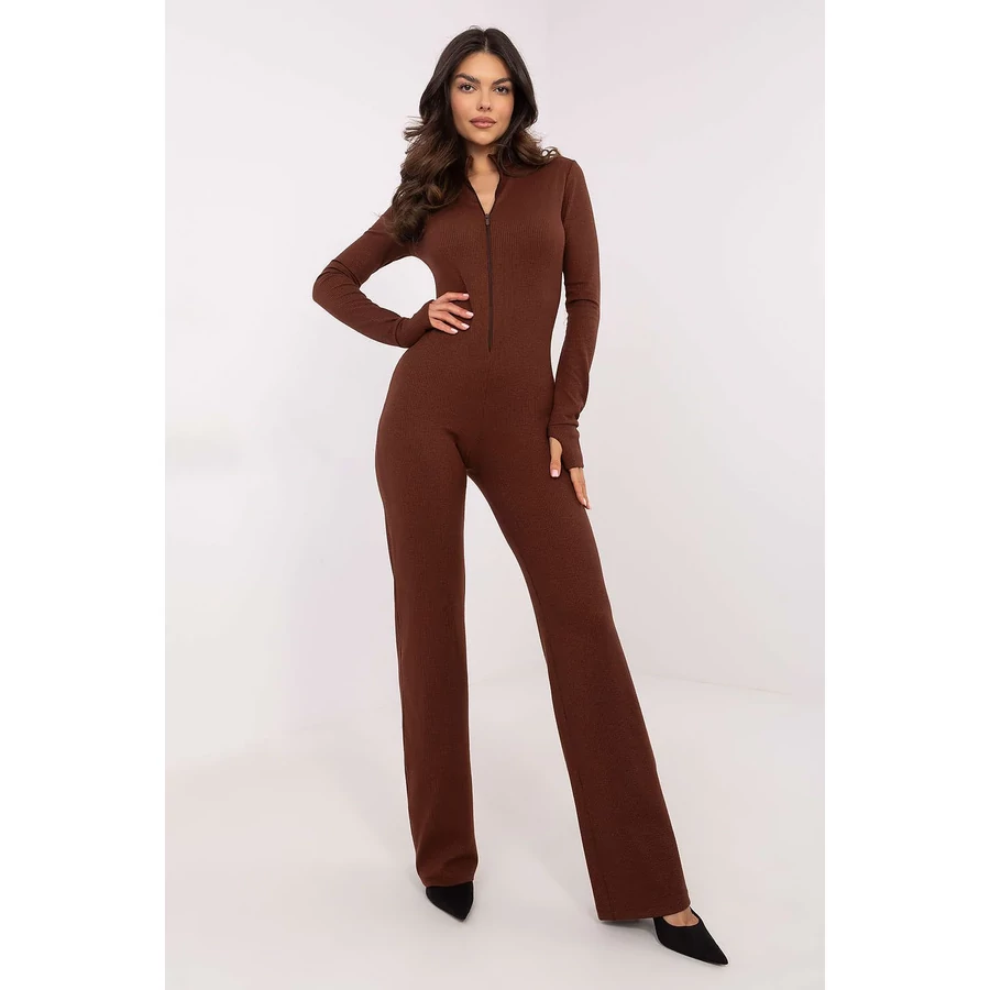 Ez a női overall az stílus és kényelem ideális kombinációja. Rugalmas pamut, poliészter és elasztán keverékéből készült, tökéletesen illeszkedik az alakhoz, kiemelve annak előnyeit. Sima, bordázott anyaga modern jellegűvé teszi, ami jól mutat mindennapos stílusokban. A hosszú lábszárak és hosszú ujjak a hüvelykujjal ellátott mandzsettával kényelmet és egyedi megjelenést biztosítanak. Az álló gallér hangsúlyozza az overall eleganciáját, míg a praktikus cipzár könnyíti az öltözködést és levetkőzést, ugyanakkor stílusos részletként szolgál. Ez egy olyan javaslat nők számára, akik értékelik a kényelmet divatos formában. Az overall tökéletes választás mindennapi tevékenységekhez, mint például sétálás, baráti találkozók vagy pihenés otthon. Kombináld kedvenc tornacipőddel vagy bokacsizmáddal, hogy divatos, laza megjelenést teremts.