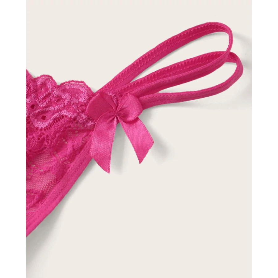 A virágmintás csipke és az átlátszó pántok játékos elegyet alkotnak, míg a merész V-fazonú tanga és a nyitott kialakítás gondoskodik az ellenállhatatlanul szexi megjelenésről. A színes, sokoldalú dizájn miatt bármely alkalommal különleges választás – legyen az romantikus este, Valentin-nap vagy meglepetés a párodnak.